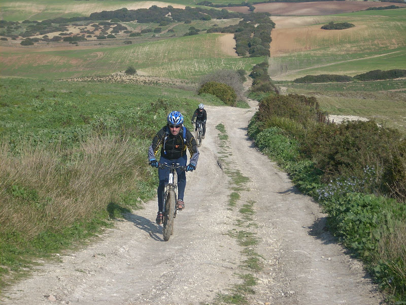 Llegamos a los Toboganes o Rompe piernas, tras pasar por zonas aun enfangadas, y el terreno en zonas seco impracticable, por las huellas de los tractores, imposible de pasar sin dejar bielas y cuadro en el camino.