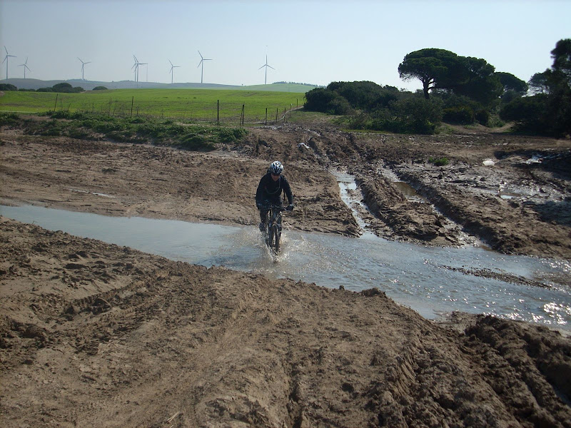 Como el Zurraque está impracticable, los llevo por el Cortijo del Ingles, para enlazar con el Corredor Dos Bahías, donde me despido de ellos, pues si sigo mucho mas, no se como acabaré cuando llegue a Cádiz.
